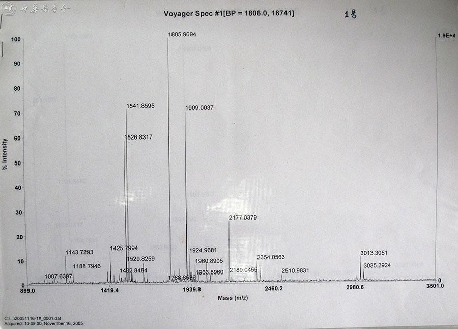 以下是质谱分析图和分析结果。